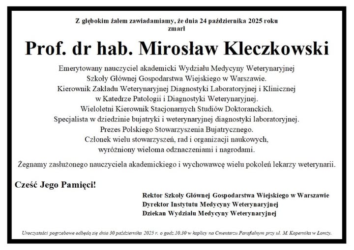 Zmarł prof. dr hab. Mirosław Kleczkowski