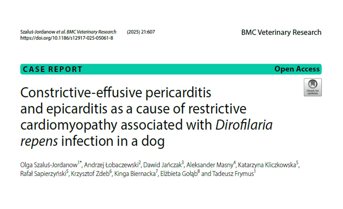 Constrictive-effusive pericarditis and epicarditis as a cause of restrictive cardiomyopathy associated with Dirofilaria repens infection in a dog