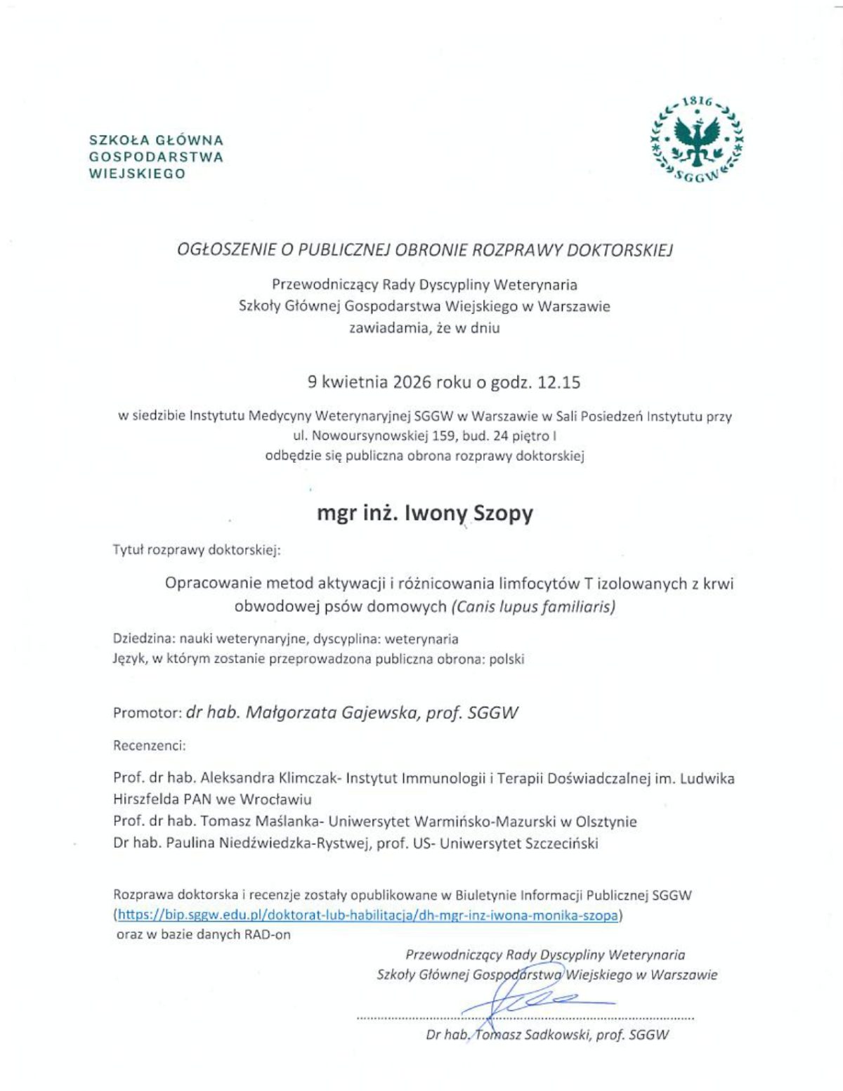 Szkoła Główna Gospodarstwa Wiejskiego w Warszawie informuje, że na swoich stronach www stosuje pliki cookies (tzw. ciasteczka), w tym pliki funkcjonalne, analityczne i reklamowe. Szczegółowe informacje na temat przetwarzania danych użytkowników serwisu i wykorzystywanych technologii śledzących dostępne są w „Polityce cookies”. Aby zmienić ustawienia skorzystaj z ustawień swojej przeglądarki, aby wyłączyć pliki cookies kliknij \"Nie wyrażam zgody\".Wyrażam zgodęNie wyrażam zgodyPolityka cookies